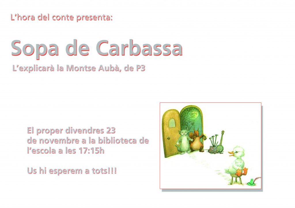 El proper divendres 23 de novembre la Montse Aubà explicarà el conte