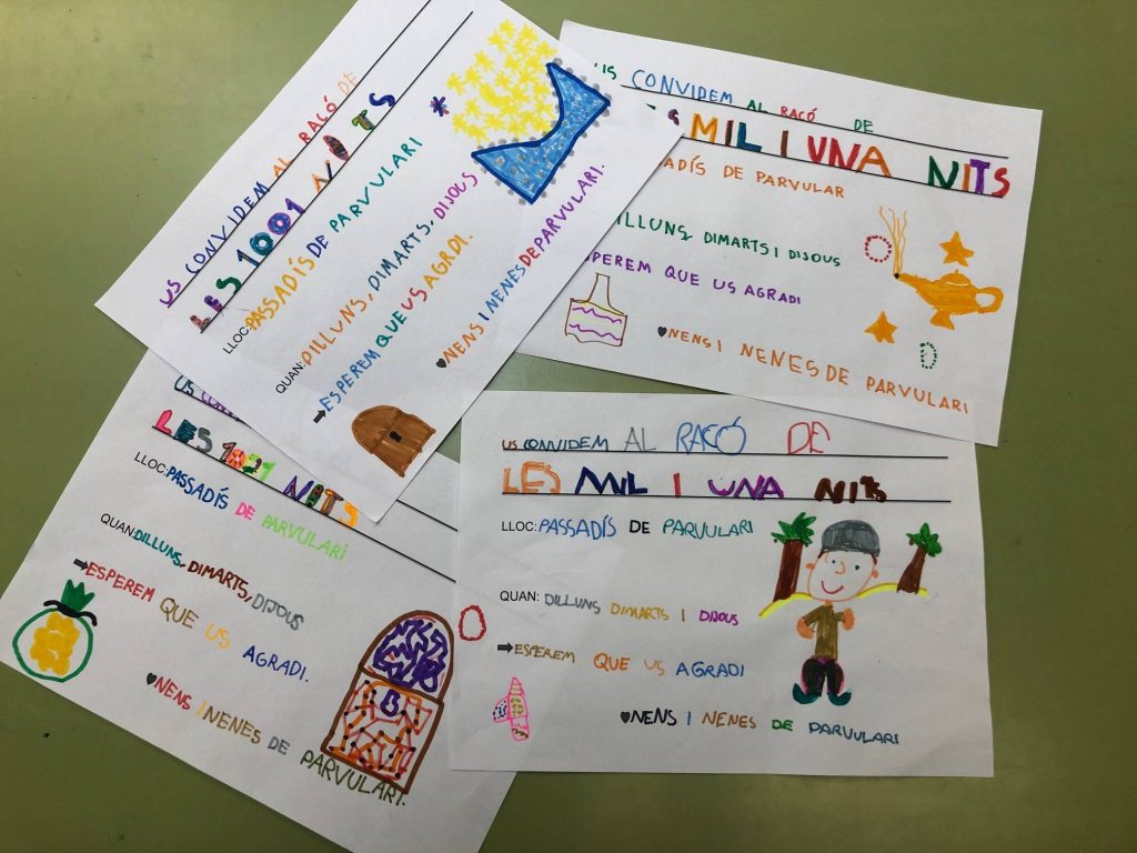 Els nens i nenes d‘Educació Infantil hem creat el racó de “Les mil i una nits” amb objectes i materials, aportats per les famílies, que ens transporten al país de l’Aladí i l’Alí Babà