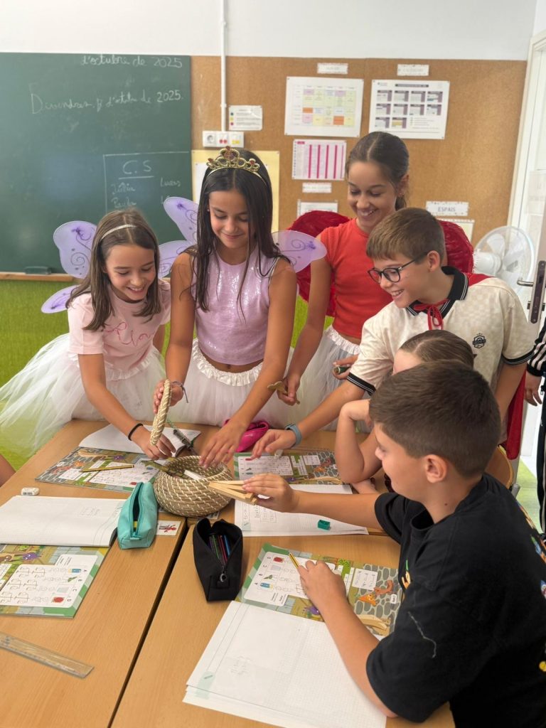 Però no s’han limitat a repartir carnets! Els nois i noies de 6è han demostrat una creativitat desbordant i un gran talent teatral. Han passat per les aules fent servir la imaginació: alguns s’han disfressat de fades de contes o d’estimats personatges literaris, i d’altres han aprofitat per explicar contes o fer petites representacions i explicar les normes de funcionament, transformant la simple entrega en una autèntica festa de la fantasia.