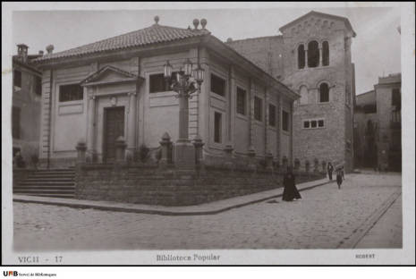 La Biblioteca Popular fou Inaugurada l’any 1931 i desapareguda l’any 1958. L’edifici estava situat a l’actual Plaça del Bisbe Oliba.