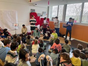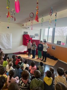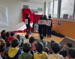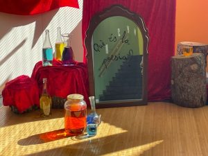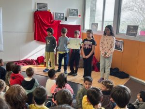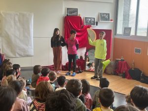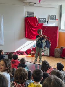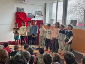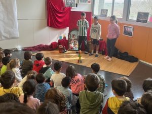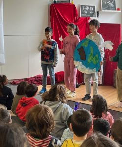 El dilluns vam trobar-nos tots els infants i mestres a l’escenari que s’havia muntat per l’ocasió al vestíbul i vam gaudir de les diverses poesies que es van recitar. El recital ens ha permès conèixer poesies de Bertolt Brecht, Marc Granell, Joana Raspall, Isabel Barriel, Josep Fortuny…, entre d’altres.
