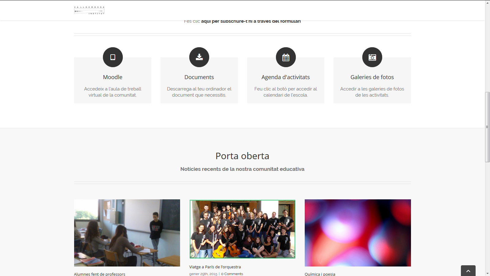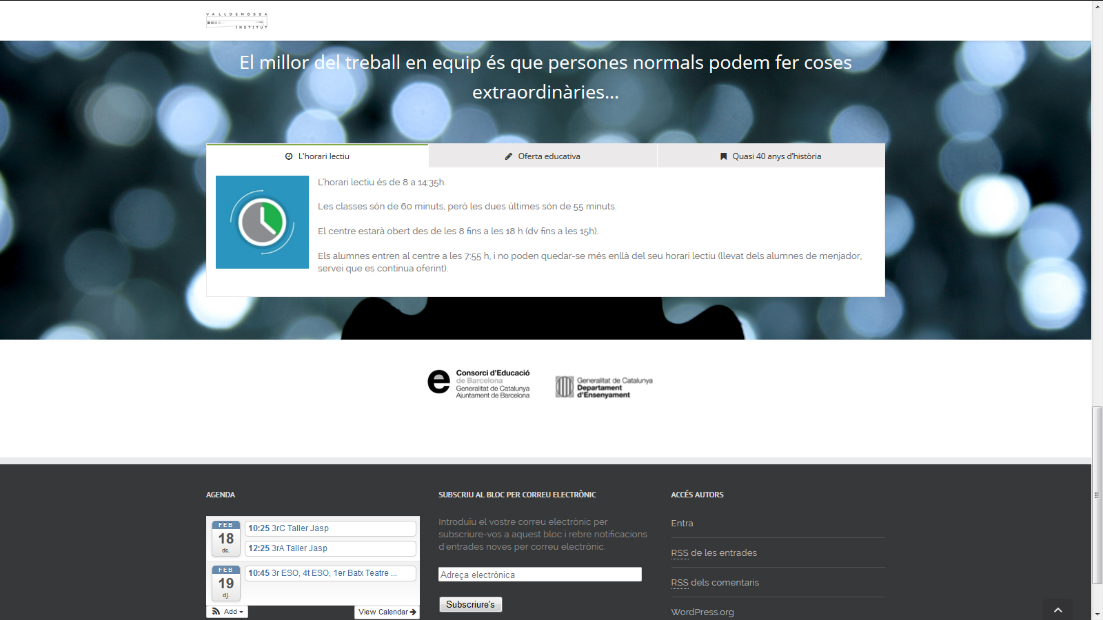 Aquesta nova pàgina ens permetrà actualitzar-la periòdicament amb més facilitat, i així poder anar informant-vos de la vida a l’institut, accedir als blogs de notícies, descarregar informacions i entrar al campus virtual – al moodle- de centre