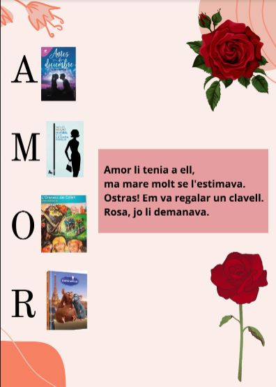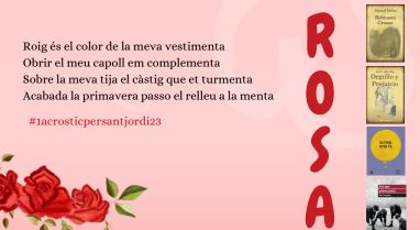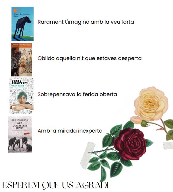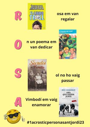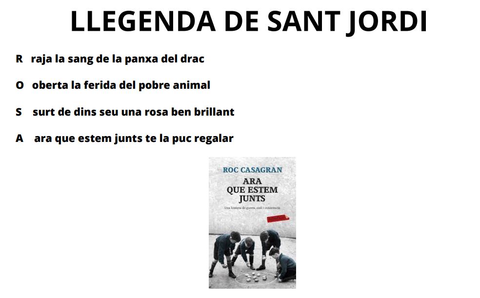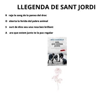 Durant la diada de Sant Jordi, una de les activitats que van dur terme els alumnes va ser elaborar un poema alternatiu, en forma d’acròstic.