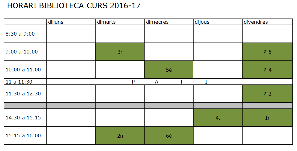 Ja ha començat aquest curs 2015-2016 el préstec de llibres en anglès. Els alumnes quart a sisè poden fer préstec de llibres d’anglès tots els divendres a les 16:00 hores.