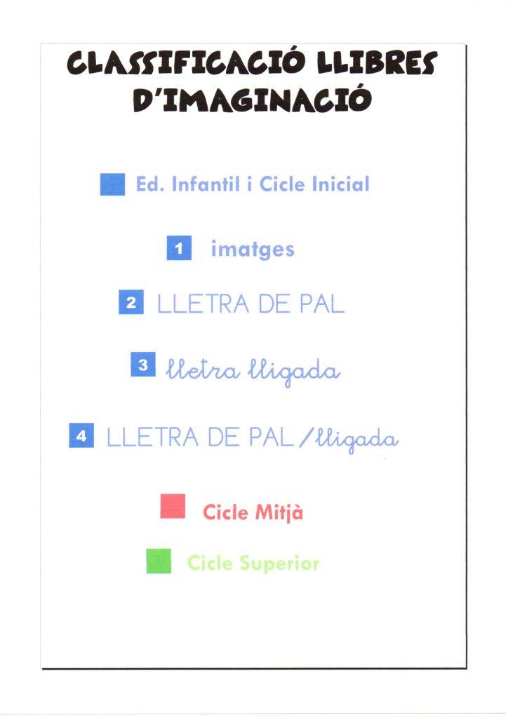 Els llibres d’imaginació es classifiquen de la següent manera: