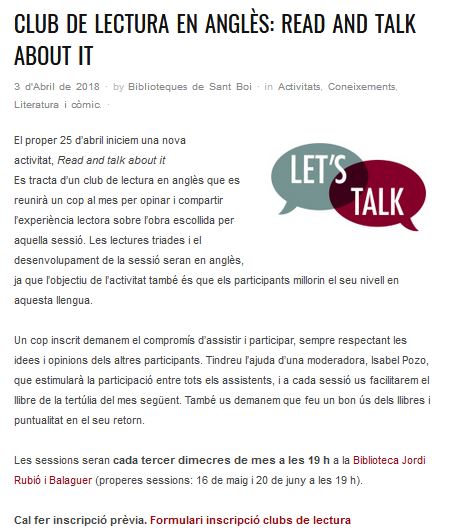 Etiquetes:Biblioteques de Sant Boi, Club de lectura, English
