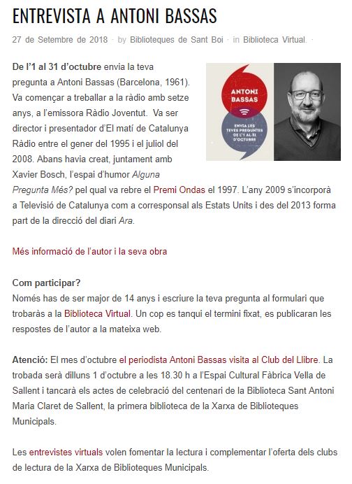 Aquesta gravació es va fer a la Biblioteca JRB, a Sant Boi. És la videorecomanació de Wonder.