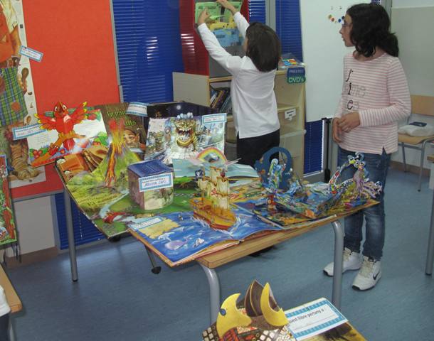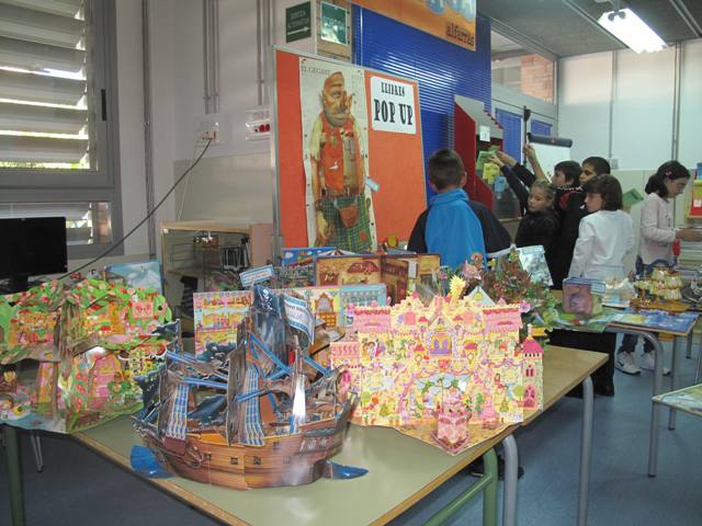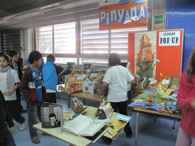 L’Àlex, de 6è, ens va dur un llibre seu amb un magnífic despleglable. De manera espontània va sorgir la idea de fer una exposició amb llibres pop up que podien portar els nens i nenes de qualsevol curs. La crida va fer efecte i en un parell de dies ja comptem amb una exposició d’allò més engrescadora. Només hi havia una condició: que els propietaris havien de permetre que els llibre es poguessin tocar i jugar amb ells. Tothom va accedir-hi i d’aquesta manera, tots els usuaris en podran gaudir.