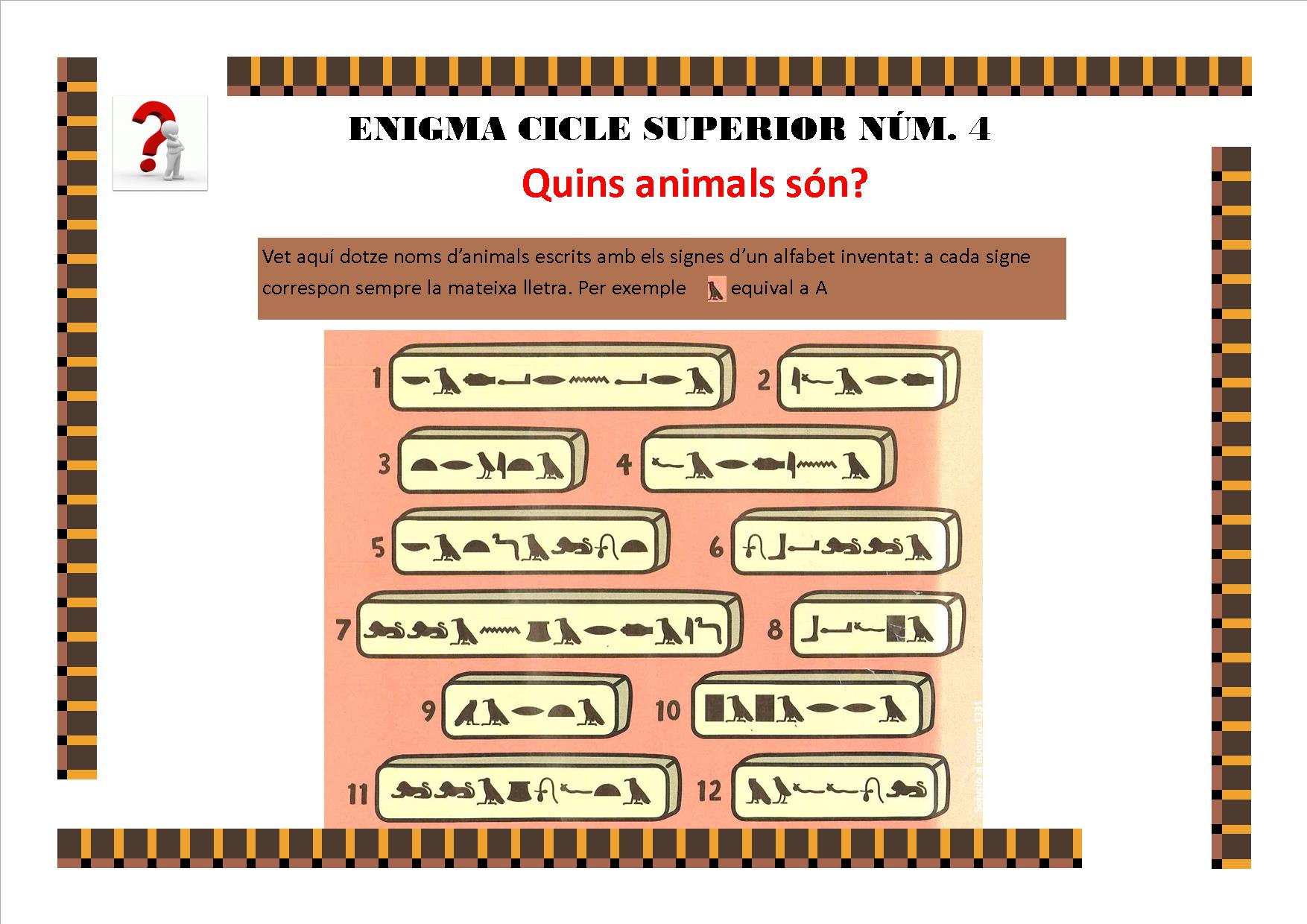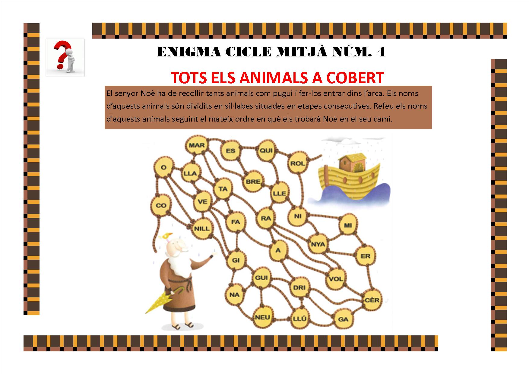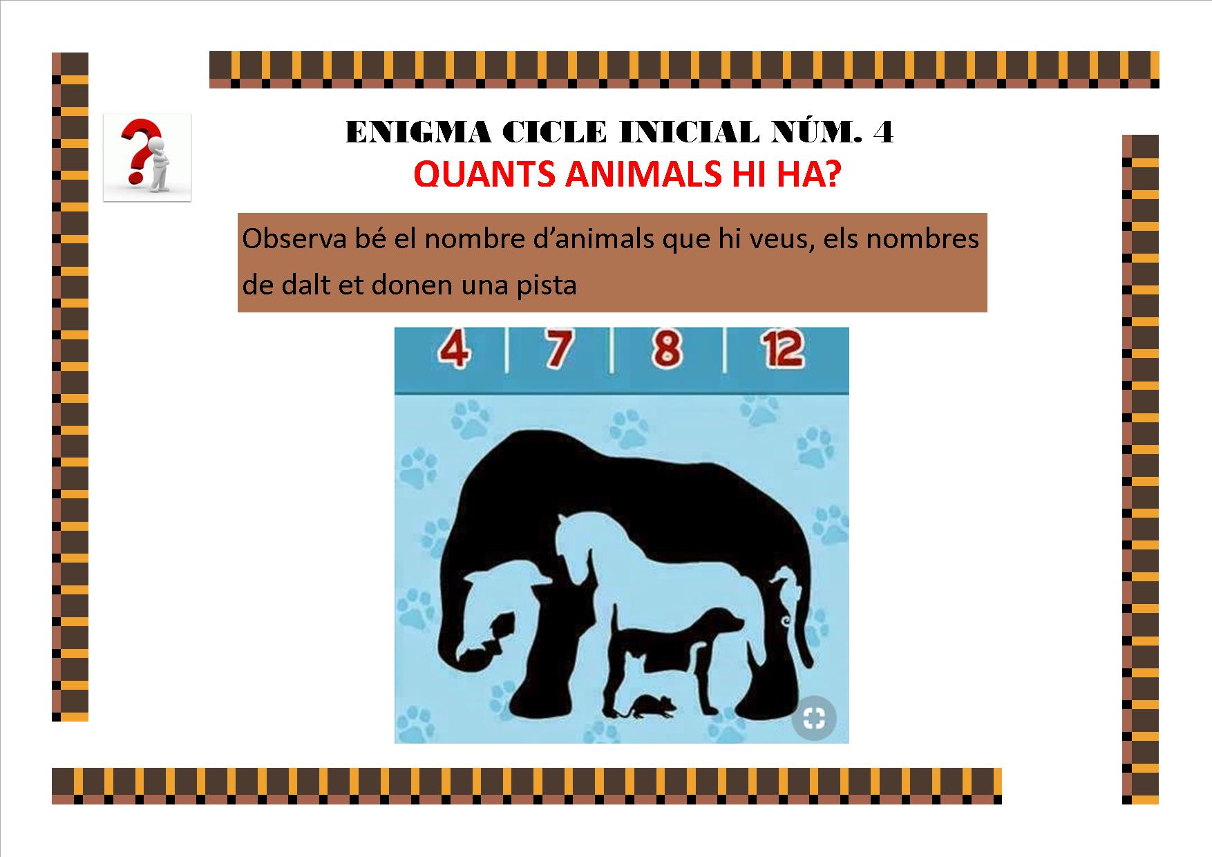Durant el mes de gener els enigmes han estat sobre el tema dels animals, que es treballa com a PIL amb l’alumnat de 3r:
