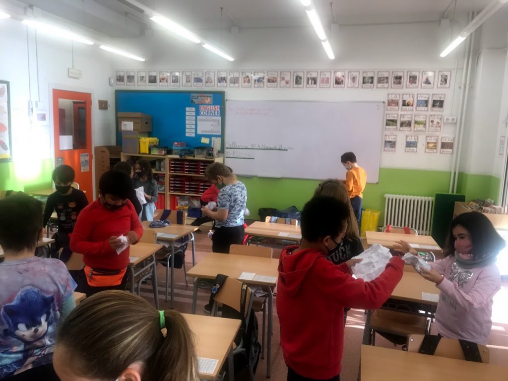 Després hem baixat al pati i hem fet un intercanvi de regalets amb els nens i les nenes de cinquè.