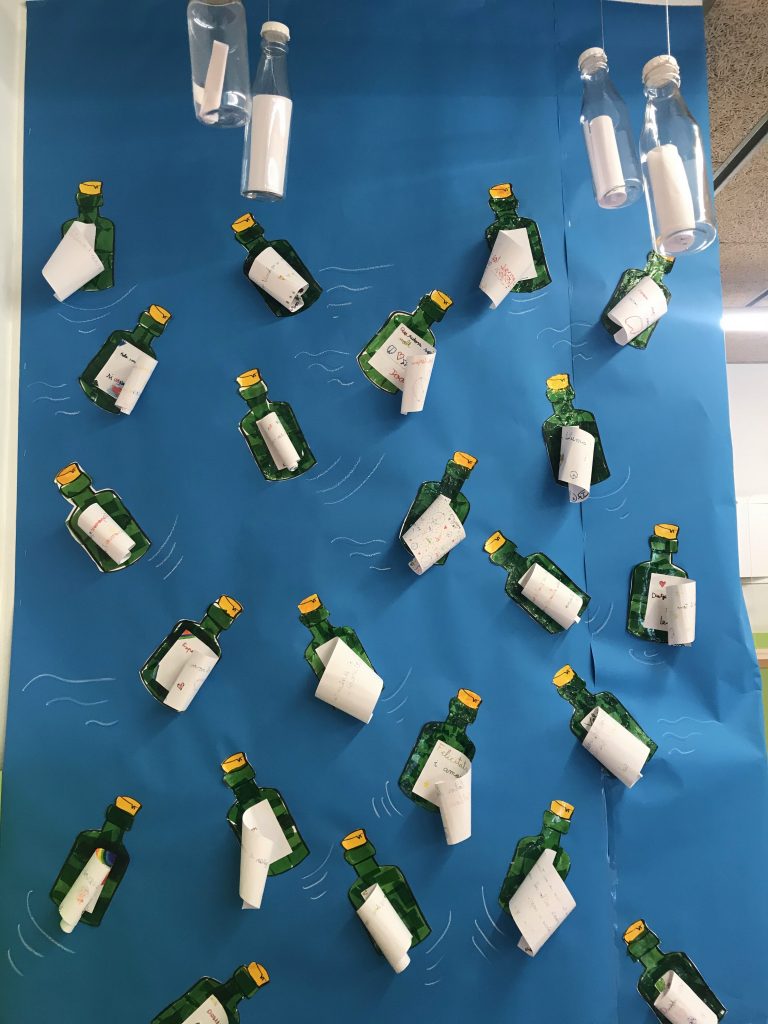 A la sessió de plàstica vam decorar les ampolles que ens servirien per posar els nostres desitjos i poder representar la nostra escultura de la Pau, que vam titular: