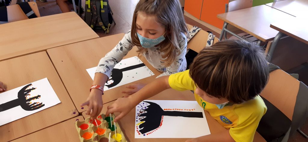 Aquesta setmana hem fet moltes activitats divertides per celebrar la festa de la Castanyada. Hem ballat algunes cançons, hem fet tallers (un fanalet de tardor i un cistell per ficar les nostres paperines), ens hem vestit de cuiners i cuineres per preparar la Magrana Reial i hem tastat el codonyat… I avui hem fet una festa amb tots els nens i nenes de l’escola.