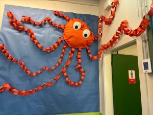 Hem fet uns murals molt bonics amb la temàtica del nostre projecte interdisciplinar “EL MÓN AQÜÀTIC”