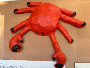 Hem fet 4 figures gegants de paper matxé que representen 4 animals aqüàtics.
