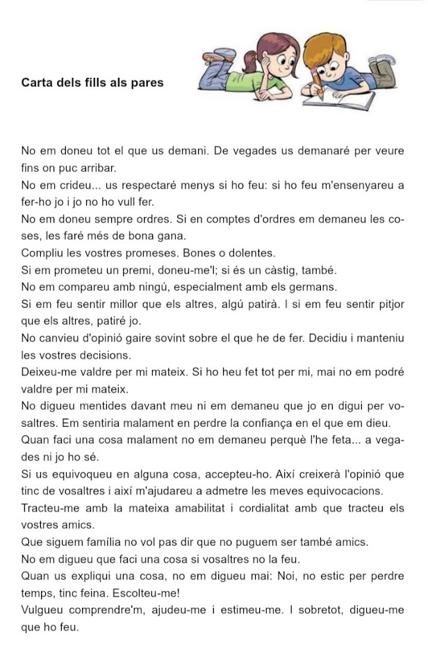 Aquesta va als pares. Llegiu-la amb tranquilitat. Penseu-la bé. Permeteu-vos un temps per mirar al vostre interior i rellegir-la si cal. Que les presses de les festes no ens facin perdre l’escència del Nadal i de la vida.