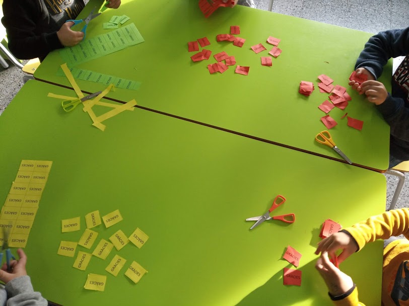 Mitjançant aquest petit joc vam ser conscients de quantes vegades ens ajuden els altres i quantes vegades nosaltres diem gràcies. Potser algun paperet d’aquests també us va arribar a casa 😉