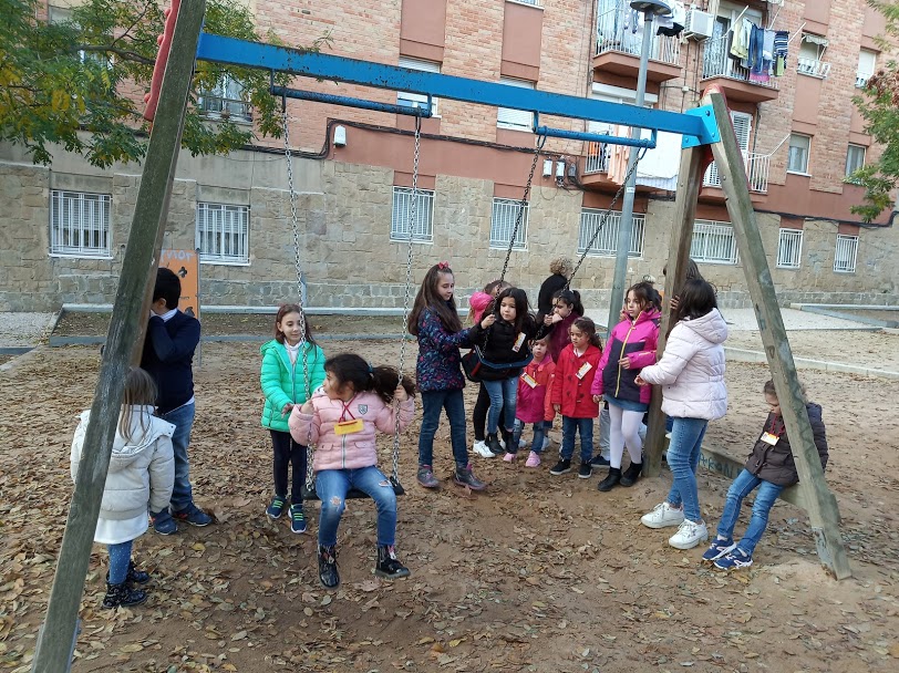 Aquest matí hem sortit una estona al parc del costat de l’escola a jugar amb els nostres padrins i padrines. Ens ho passem bé jugant i estant amb ells, ens ajuden a cordar la jaqueta, ens dónen un cop de mà si no podem pujar al gronxador, ens cuiden si ens fem mal…