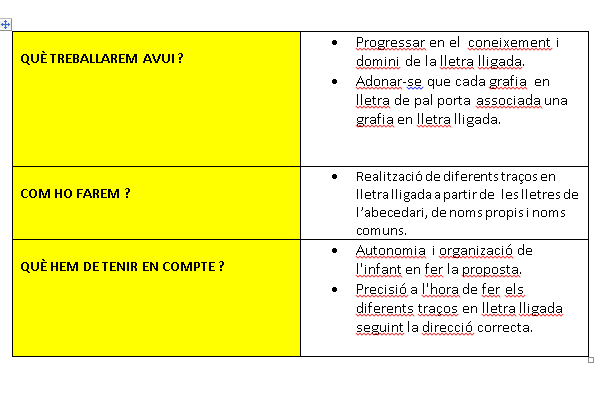 Bon dia i bona setmana! Avui comencem a fer feina amb una mica de lletra lligada.