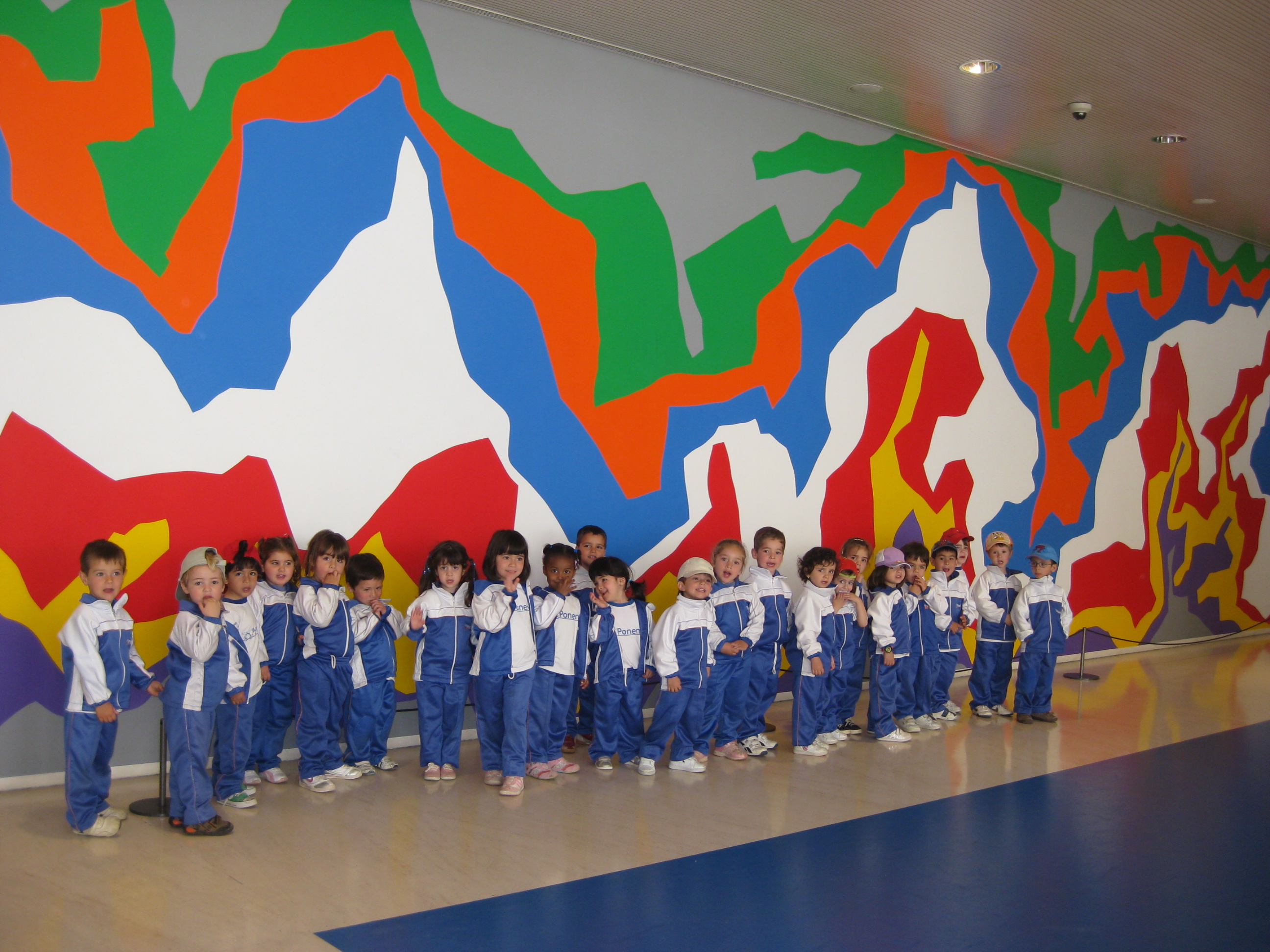 A partir del mural del Sol Lewitt estem treballant les línies corbes i les línies rectes.