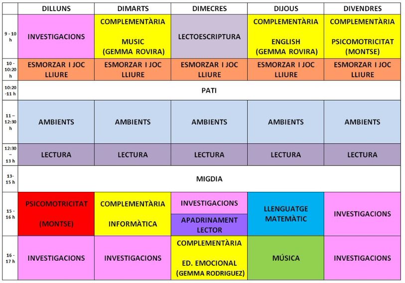 Com sempre us diem, és un horari orientatiu, ja que segons les activitats programades podem variar alguna franja.