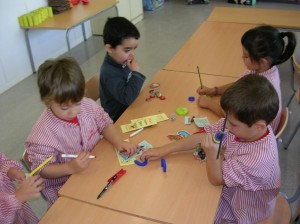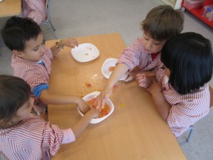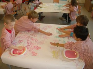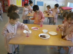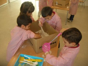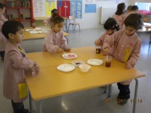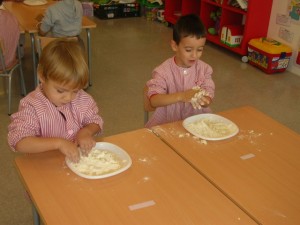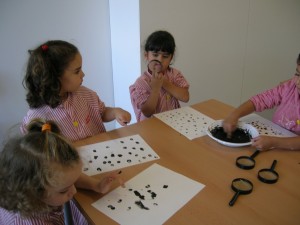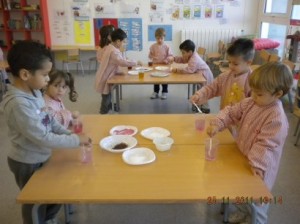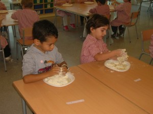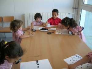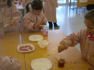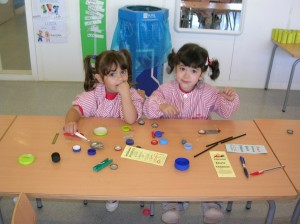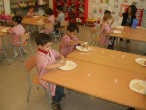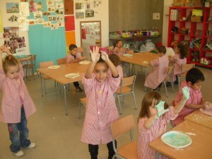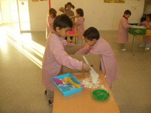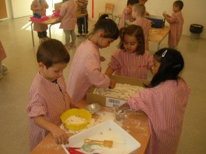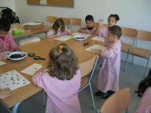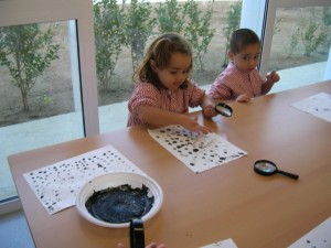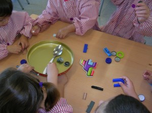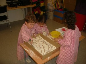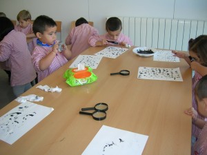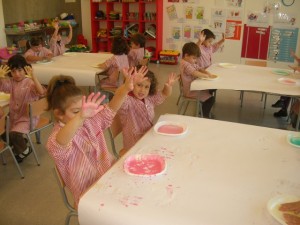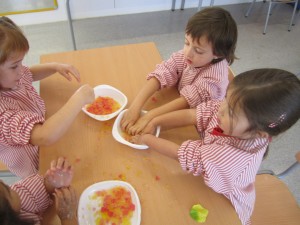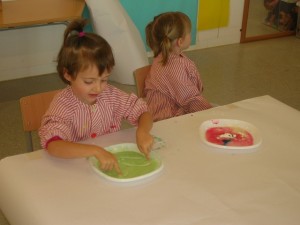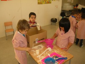 A L’escola Reus 21 durant la setmana de la Ciència tots els nens i nenes de P3 i P4 ens hem ajuntat per experimentar. Hem fet diversos tallers d’experiments: fem pastetes amb farina i colors, agafem gelatina dins de diversos líquids, fem les nostres empremtes i mirem amb lupes, separem la pasta de la farina, juguem amb els imans, canviem el color de l’aigua.