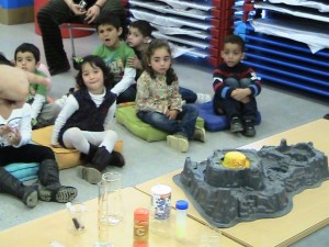 També ha vingut a visitar-nos la mare de la Judith de P4 que és química i ens ha ensenyat com funciona l’erupció d’un volcà. ENS HO HEM PASSAT TOTS PLEGATS MOLT DIVERTIT TOT FENT EXPERIMENTS I APRENENT COSES SORPRENENTS!!! i SI NO US HO CREIEU, AQUÍ TENIU UNES IMATGES….