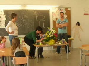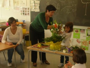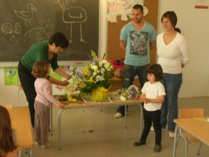 Aquesta setmana la protagonista ha estat la Lucia i ens ha explicat un munt de coses de la seva família. El divendres a la tarda van venir els seus pares i la seva àvia i ens van dur a l’escola moltes flors de tots colors. Ummmm!!! quina bona olor que feien. Ens van ensenyar com es fa un bonic ram de flors naturals per la nostra classe dels colors.