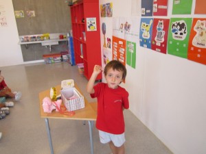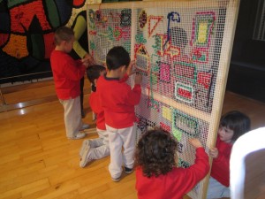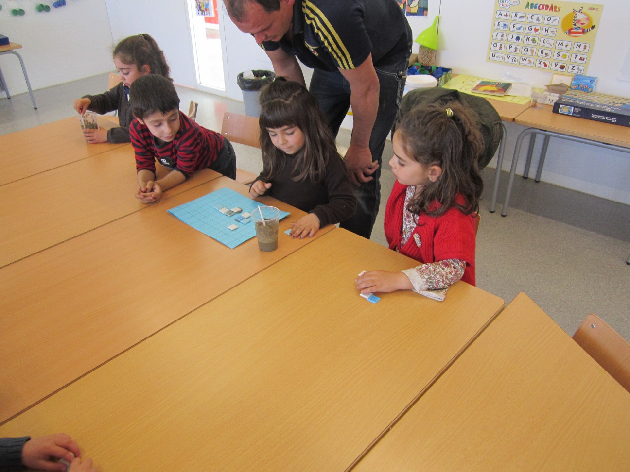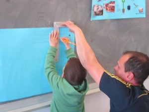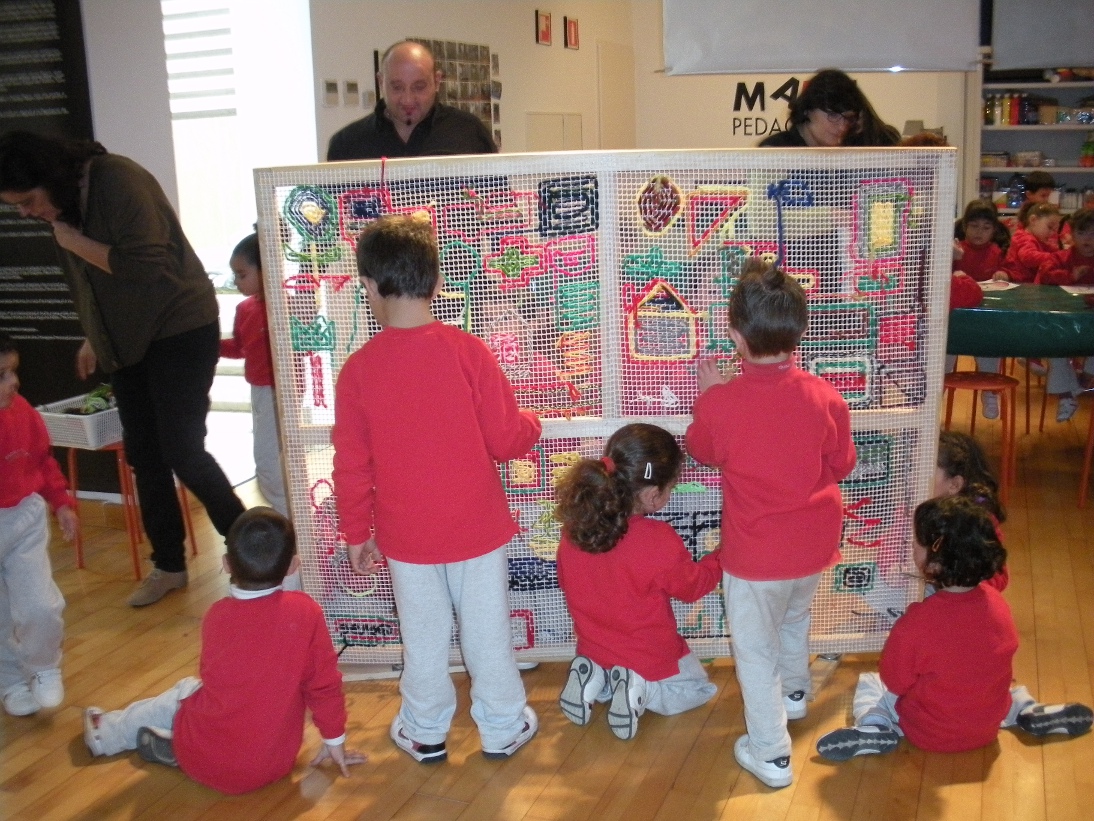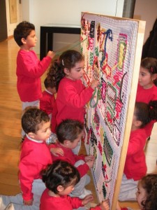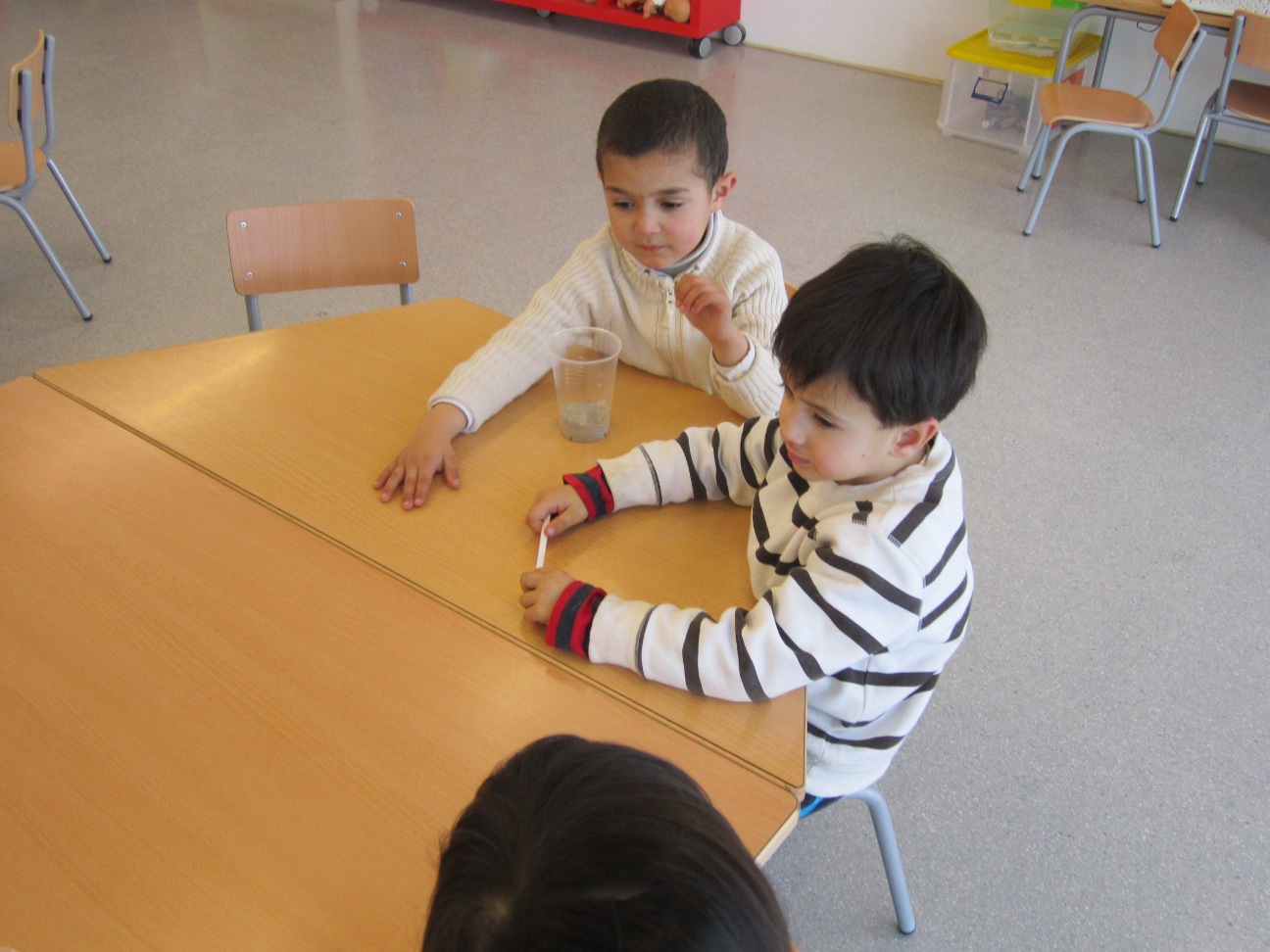 Aquesta setmana passada, el pare de l’Iker de la classe del Jardí ens va venir a explicar l’ofici de paleta. Ens va portar els estris que utilitzen i ens va ensenyar com es fa el ciment. Després nosaltres ho vam poder provar com si fóssim paletes i finalment entre totes i tots vam confeccionar un mosaic amb petites peces de colors.