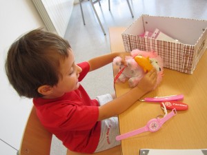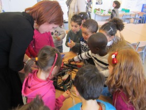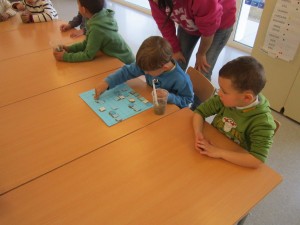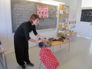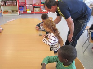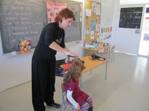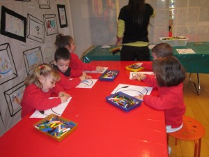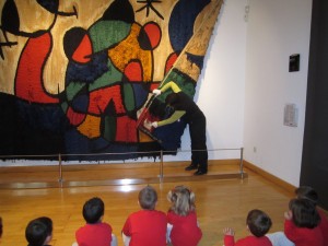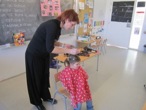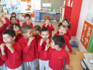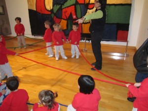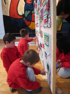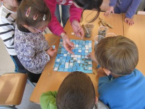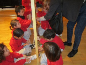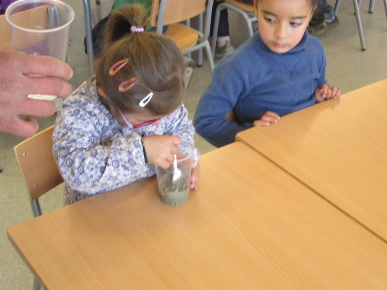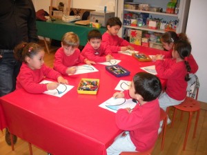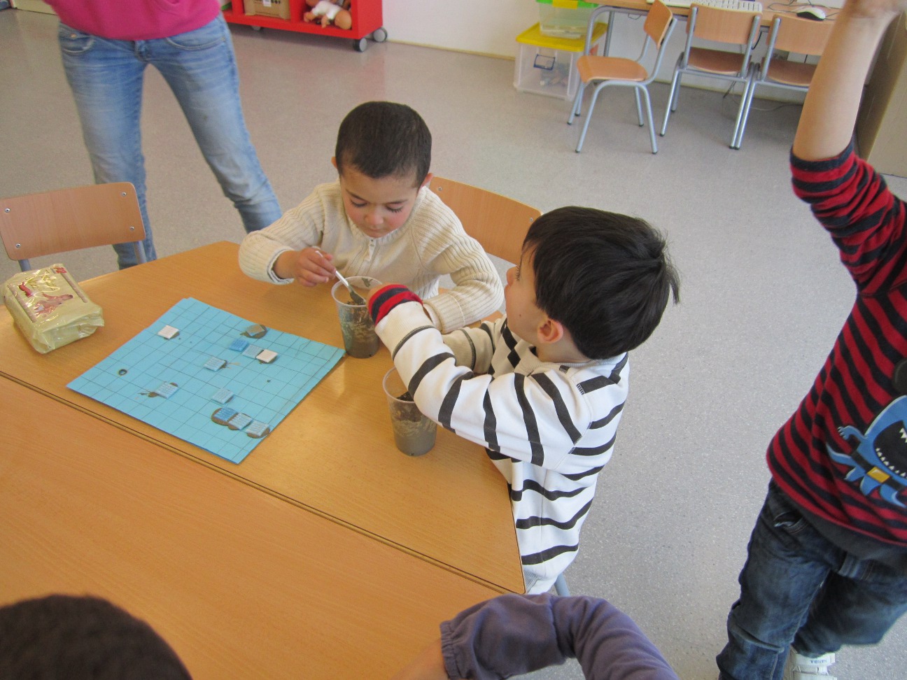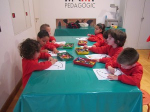 Aquesta setmana passada, el pare de l’Iker de la classe del Jardí ens va venir a explicar l’ofici de paleta. Ens va portar els estris que utilitzen i ens va ensenyar com es fa el ciment. Després nosaltres ho vam poder provar com si fóssim paletes i finalment entre totes i tots vam confeccionar un mosaic amb petites peces de colors.