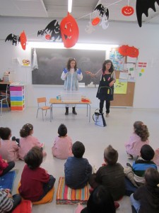 I amb la mare de la Martina de la classe del Jardí vam poder fer l’experiment dels cossos que suren a l’aigua salada, tot depenent de la concentració de sal que tingui aquesta.