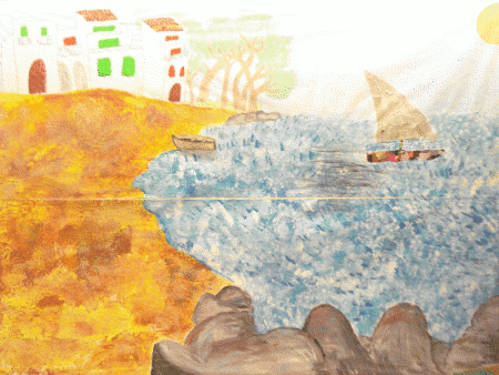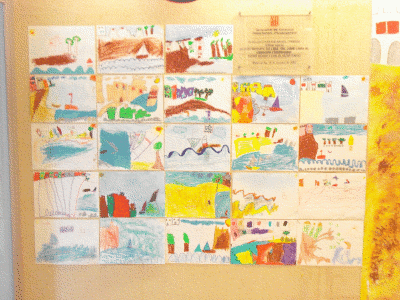 Hola famílies!!! Sabeu què hem fet avui??? Doncs havíem d’anar al vestíbul de l’escola per pintar unes casetes, la sorra i una barca per fer un paisatge de la Costa Brava. I clar, ens hem animat tant i tant que finalment cadascú de nosaltres ha acabat fent un paisatge de la Costa Brava. Ho voleu veure??? Segur que si! Doncs aquí us deixem una foto i de pas, també l’original, però no compareu perquè no hi ha punt de comparació, els nostres són millors.
