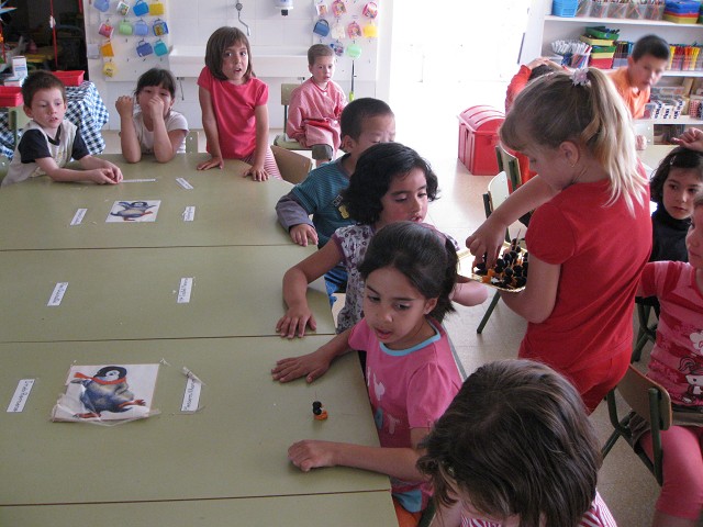 Racó de plàstica: té com a objectiu deixar totalment lliure la nostra creativitat i la nostra imaginació. Tenin diferents materials: fulls, papers diversos per fer collage, retoladors, … S’agafen lliurement les tisores, els punxons, la cola d’enganxar,… Dibuixem, pintem, pleguem, estripem, punxem, retallem, enganxem,… gaudint i sense preocupar-nos pels resultats. Les nostres obres d’art quedara exposades uns dies en el “Museu dels pingüins” i després cada un de nosaltres decidirà què fa amb la seva producció: regalar-la a algú de l’escola, emportar-se-la a casa…