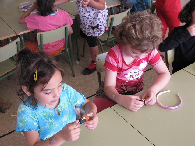 Racó de motricitat fina: en aquest racó elaborem meravellosos penjolls amb molta cura, aprenem a enfilar, el que ens ajuda a practicar el moviment de piça fina.