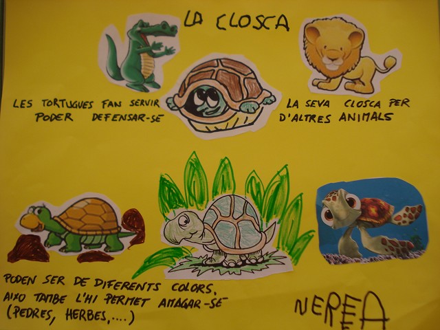 Com ja sabeu la paraula Tortugues és el nom de la nostra classe. I ara que nosaltres ja som més grans, volem aprendre moltes més coses d’aquests animals. Per això hem començat el Projecte d’aquests animals. Justament per això la Isa us demana informació sobre aspectes concrets. Aquest cop volíem respondre COM SÓN? I voleu saber com són?…. Guaiteu