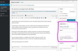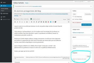 Tingueu en compte que podeu afegir-hi un resum, tant de text com imatge representativa de la notícia. També és molt útil etiquetar les notícies, per facilitar recerques posteriors als visitants del bloc.