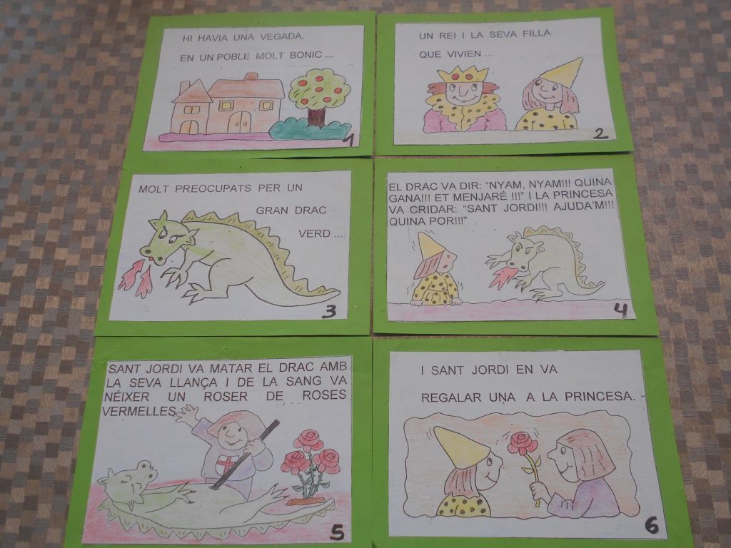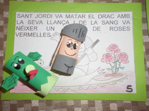 Per donar per acabat el projecte farem un Jclic sobre Sant Jordi. Escoltarem la història breument i després farem les activitats de lectura, comprensió, ordenació de paraules a la frase i els puzzles de les imatges que hi apareixen. Farem només les activitats adreçades a Cicle Inicial. Ho farem a l’aula d’informàtica i anirem donant suport a aquells que encara els hi costa una mica el domini del ratolí, així com als que necessiten una mica més de suport.