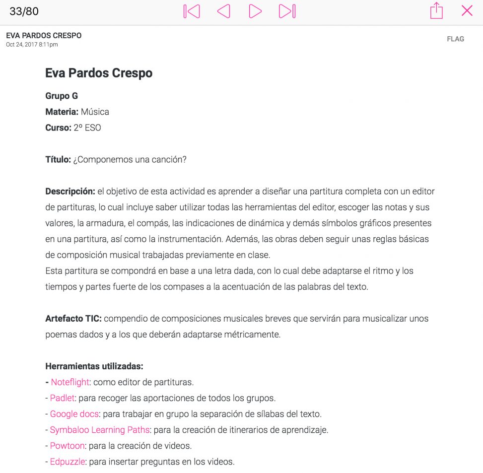 Una de las últimas actividades que hemos tenido que realizar en este bloque ha sido el diseño de un artefacto TIC, que teníamos que presentar en Padlet. No conocía anteriormente este recurso y reconozco que es uno de los que más me ha gustado, por su simplicidad y por las diferentes aplicaciones que puede tener en el aula. Yo misma he sacado mucho provecho en esta actividad, al poder consultar las aportaciones de mis compañeros, las cuales me han servido de guía para diseñar la mía propia.