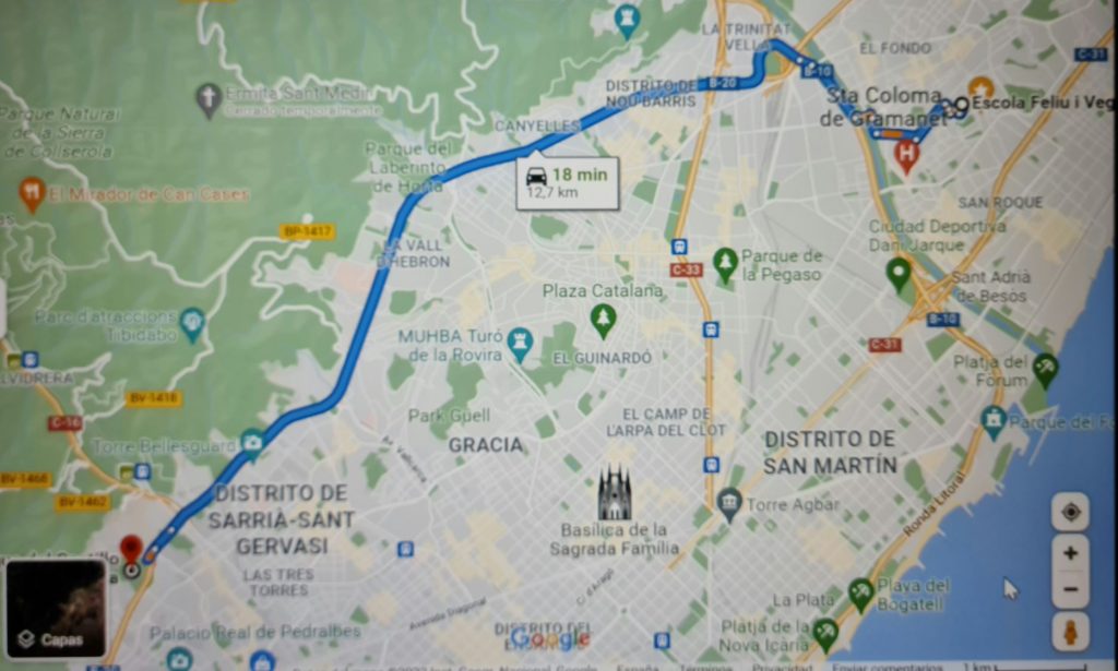 Aquesta segona activitat es fa en petit grup, per tal que tots i totes puguin participar. A través de la PDI resseguim els diversos camins que ens ofereix el Google maps, amb diferents colors i triem per quin camí anirem.