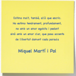 Aquestes expressions personals es transmeten clarament amb el poema Ara mateix de Miquel Martí i Pol, un dels meus poetes preferits.