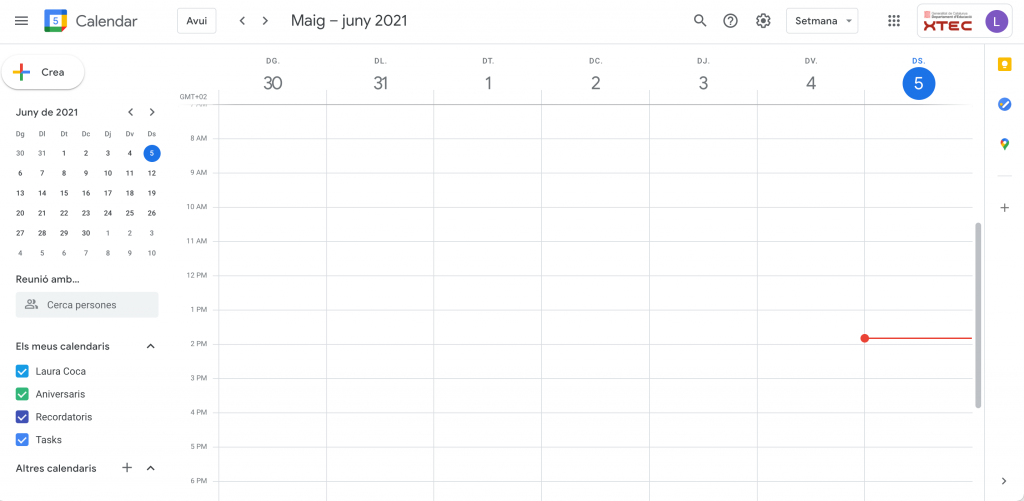 Google Calendar. (Imatge pròpia: captura de pantalla).