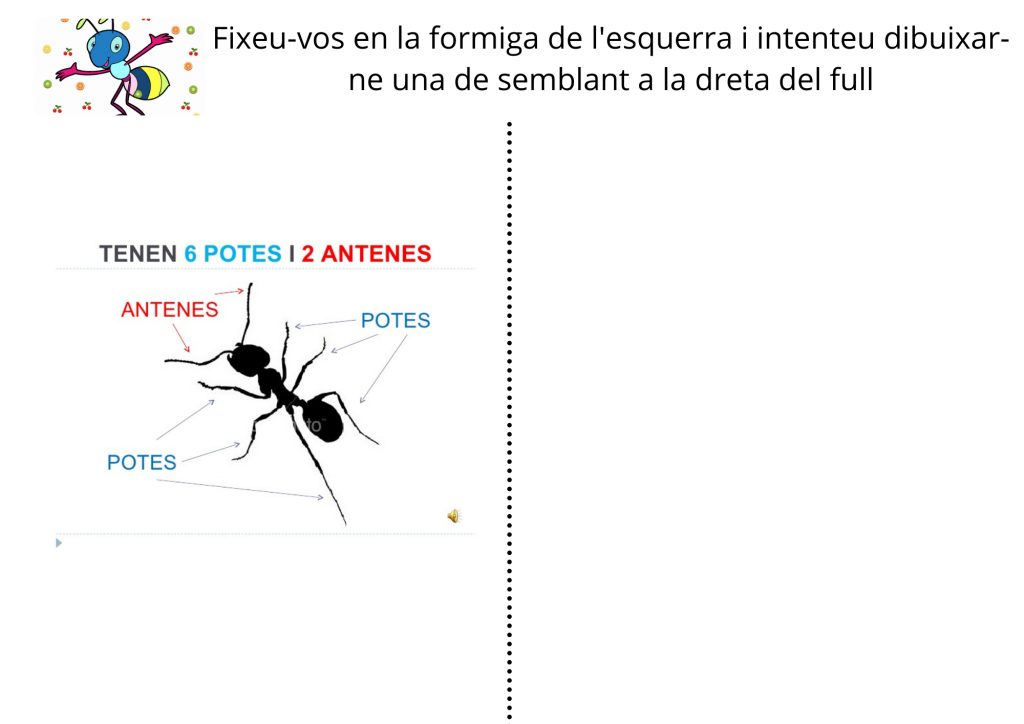A partir d’una imatge, intentaran fer el seu propi dibuix de la formiga.