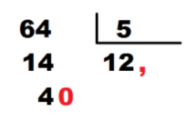 El quocient és 12 i tenim un residu de 4. En el quocient afegirem un decimal i baixarem del dividend un 0