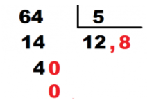 Obtenim el resultat final, que serà com a quocient 12,8 |