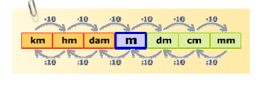 Per a canviar d’una unitat a una altra, es multiplica o divideix successivament per 10.
