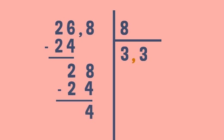 Divideix: 2,68 : 0,8 = (2,68 · 10) : (0,8 · 10) = 26,8 : 8