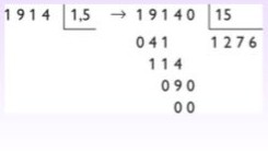 Divideix: 1914 : 1,5 = 1276 1914 · 10 = 19140 ; 1,5 · 10 = 15