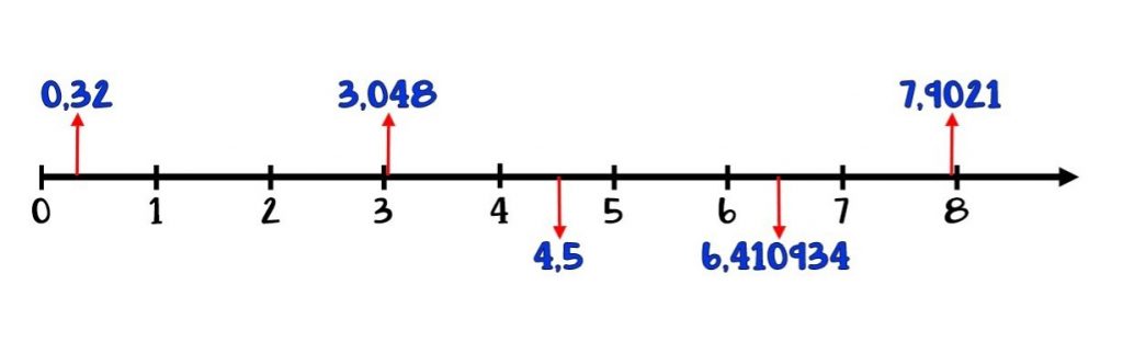 Per representar un nombre decimal, es busquen els dos nombres enters entre els quals està comprès; aquests dos nombres determinen un segment en la recta numèrica. El segment es divideix en 10 parts iguals (dècimes), o en 100 parts iguals (centèsimes)… fins arribar al nombre decimal donat.