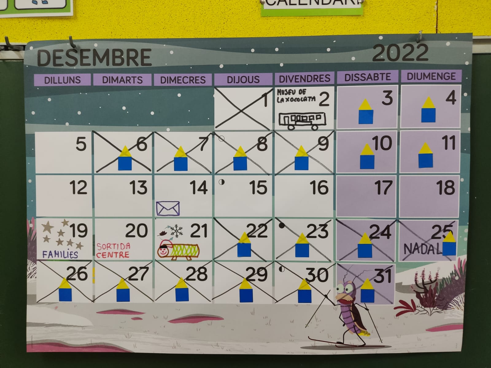 Cada dia abans d’esmorzar fem el bon dia. Mirem el temps que fa, passem llista i comptem els nens i nenes que hi ha a l’escola i els que s’an quedat a casa i també mirem el nostre calendari de la classe. Ens ajuda a situar-nos, saber quin dia és i quin mes. Quans dies falten per fer coses super xules o celebrar l’aniversari d’algun company.