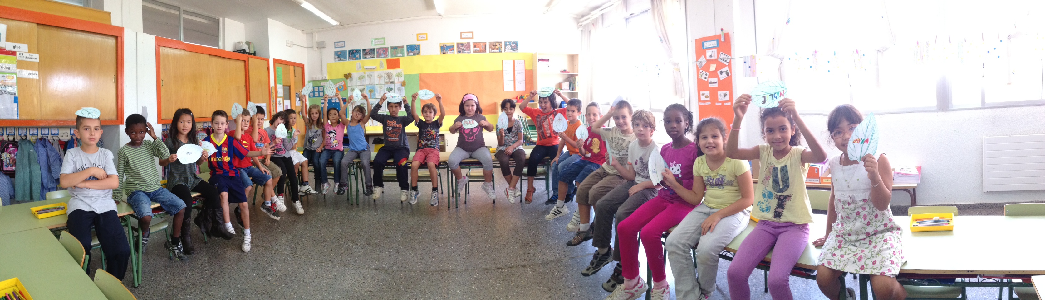 Hem realitzat un taller d’impressió de fulles a l’aula i a sobre s’ha escrit el nostre nom.
