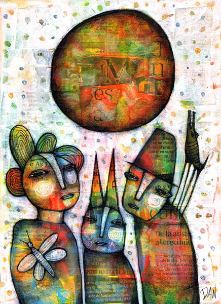 He trobat a la web Pinzellades al Món aquestes il·lustracions de Dan -Daniel- Casado per tal de donar una mirada artística diferent . Figures geomètriques pintades sobre paper de periòdic, escenes inversemblants, molt de color i música. Són fantàsticament belles i originals, com somnis transformats en geometria.